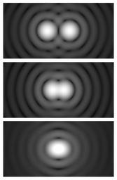 | Keywords: Airy disk spacing near Rayleigh criterion.png en Two airy disks at various spacings top twice the distance to the first minimum middle exactly the distance to the first minimum the Rayleigh criterion and bottom half the distance This image uses a nonlinear color scale specifically the fourth root in order to better show the minima and maxima дисков Э и Эй и асположенных на асстояниях по ядка п едела Э и Ве х на асстоянии диамет а диска Э и Се едина на асстоянии адиуса диска Э и и из на асстоянии в половину адиуса диска Э и В изоб ажении п именена нелинейная шкала я кости чтобы лучше показать минимумы и максимумы own Spencer Bliven 2014-03-05 Source Code The three images were created in R then cropped and assembled using GIMP navbox collapsible collapsed style text-align left; border 0px; margin-top 0 2em; - style background d0e5f5; border 1px solid abd5f5 R source code - click on the right to view - airydisks_rayleigh_sqrt py - border solid 1px silver; padding 8px; background-color white; <source lang rsplus > /usr/bin/env Rscript Diffraction pattern for two airy disks illustrating the Rayleigh criterion Released to Public Domain by Spencer Bliven x seq -5 5 01 y seq -5 5 01 airy <- function xx yy x1 y1 r<-sqrt xx-x1 2+ yy-y1 2 1 22 pi z 2 besselJ r 1 /r 2 z diffractionPlot function spacing 1 useRaster F z1 outer x y FUN function xx yy airy xx yy -spacing/2 0 z2 outer x y FUN function xx yy airy xx yy spacing/2 0 z1is na z1 1 0 z2is na z2 1 0 z z1+z2 grad grey 0 2 16 /2 16 par pty s Non-linear z scale to increase contrast image x y z 1/4 zlim c 0 1 col grad axes F useRaster useRaster png airy_0 5 png bg FFFFFF00 diffractionPlot 5 dev off png airy_1 0 png bg FFFFFF00 diffractionPlot 1 dev off png airy_2 0 png bg FFFFFF00 diffractionPlot 2 dev off </source> Airy disks Images_with_R_source_code |