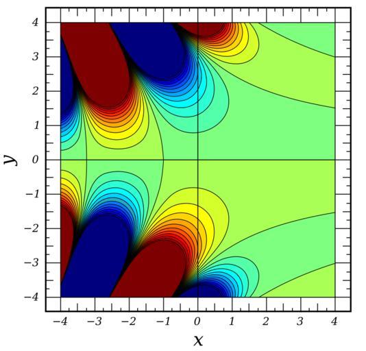 | Keywords: AiryAi Imag Contour.svg A graph of the imaginary part of the Airy Ai function over the complex plane <br> <math>f x \Im \left \mathrm Ai x + iy \right \ </math><br> Both x and y run from -4 to 4 self-made Inkscape Mathematica 06/03/2008 Inductiveload Mathematica Code <pre><nowiki> conts ContourPlot ImAiryAix + I y x -4 4 y -4 4 ContourShading -> False Contours -> 24 Frame -> False PlotPoints -> 100 </nowiki></pre> Airy function with complex arguments | ||||