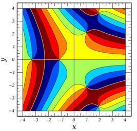 | Keywords: AiryBi Arg Contour.svg A contour plot of the argument of the Airy function <br> <math>\mathrm arg \left \mathrm Bi x + iy \right \ </math><br> x and y both run from -4 to 4 self-made Mathematica 07/03/2008 Inductiveload Mathematica Code <pre><nowiki> conts ContourPlot ArgAiryBix + I y x -4 4 y -4 4 ContourShading -> False Contours -> 7 Frame -> False PlotPoints -> 100 </nowiki></pre> Airy function with complex arguments Contour plots | ||||