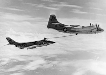 | Keywords: AJ-2 VAH-16 refueling VF-64 F3H-2 c1958.jpeg A U S Navy North American AJ-2 Savage BuNo 134047 from Heavy Attack Squadron VAH-16 White Blades refueling a McDonnell F3H-2 Demon BuNo 143457 from Fighter Squadron VF-64 Free Lancers The Demon is armed with AIM-9 Sidewinder and AIM-7 Sparrow missiles http //collections naval aviation museum/emuwebdoncoms/pages/doncoms/Query php U S Navy National Museum of Naval Aviation photo No http //collections naval aviation museum/emuwebdoncoms/pages/doncoms/Display php irn 16002448 QueryPage 2Femuwebdoncoms 2Fpages 2Fdoncoms 2FAdvQuery php 1996 253 3173 ca 1958 U S Navy PD-USGov-Military-Navy McDonnell F3H Demon Fighter Squadron 21 United States Navy North American AJ Savage Aerial refueling |