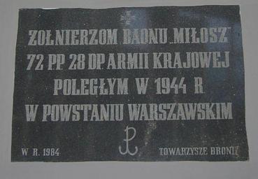 Keywords: AK MIŁOSZ.jpg Tablica upamiętniająca walki żołnierzy batoalionu AK Miłosz na ul Konopnickiej 6 Gmach YMCA Own 3 08 2007 Pior 52 230415 21 000141 Warsaw Uprising plaques Konopnickiej Street in Warsaw