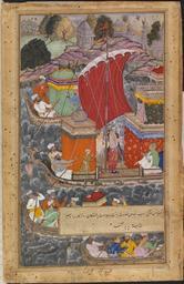 | Keywords: Akbar's mother travels by boat to Agra.jpg Akbar's mother travels by boat to Agra Tulsi artist Durga artist between 1590 1596 and between 1858 1862 en This painting from the official history of Akbar's reign depicts his mother Mariam Makani travelling to Agra by river It is related to IS 2 3-1896 which shows several boats including that of the emperor and was painted by Tulsi and Durga The Akbarnama Book of Akbar was commissioned by the emperor Akbar as the official chronicle of his reign It was written by his court historian and biographer Abu'l Fazl between 1590 and 1596 and is thought to have been illustrated between c 1592 and 1594 by at least forty-nine different artists from Akbar's studio After Akbar's death in 1605 the manuscript remained in the library of his son Jahangir r 1605-1627 and later Shah Jahan r 1628-1658 The Victoria and Albert Museum purchased it in 1896 from Mrs Frances Clarke the widow of Major General Clarke an official who had been the Commissioner in Oudh province between 1858 and 1862 http //collections vam ac uk/item/O9283/akbars-mother-travels-by-boat-painting-tulsi/ Other versions PD-Art Uploaded with UploadWizard Akbarnama Hamida Banu Begum |