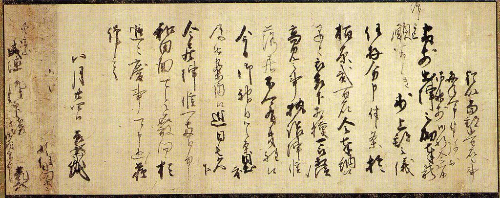 | Keywords: Akechi Mituhide3.jpg ja 明智光 書状 ブレイズマン <span class signature-talk >talk</span> 02 38 15 August 2008 UTC 投稿 がファイル 成 2008-08-15 [説明] 幅 天正7年(1579年)8 24日 28 0 × 71 7 安 城 古博物館 蔵 PD-Japan Akechi Mitsuhide Chugoku Campaign Old letters ancient documents of Japan |