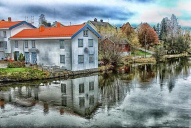 Keywords: akershus norway town trees sky clouds canal waterway reflections nature outside hdr buildings architecture