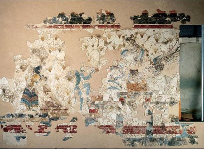| Keywords: Akrotiri Mistress of animals.jpg bronze age fresco of a woman on a throne with two female adorants in front and a griffin behind her Found at the Akrotiri Site on the Greek island Santorini building Xeste 3 Room 9 Northern Wall Thera Foundation - http //www therafoundation org/wallpaintingexhibition/mistress-of-animals-and-saffron-gatherer/wallpainting circa 1650 BC unknown painter of the bronze age around 1650 BC PD-Art Potnia Theron Akrotiri jpg 100px Frescos from Akrotiri in the National Archaeological Museum of Athens Mistress of animals/Potnia theron and saffron gatherer Akrotiri Griffins Potniai theron |