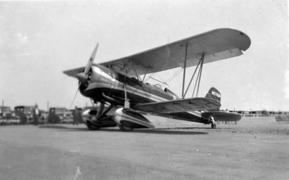 | Keywords: airplane nc783h nr783h stearman 4-ex stearman4ex blackandwhite monochrome vehicle aircraft outdoor black and white Photos from an Album (AL-218) containing images of aircraft taken circa 1930-40 in the bay area. Repository: San Diego Air and Space Museum Archive Photos from an Album (AL-218) containing images of aircraft taken circa 1930-40 in the bay area. Repository: San Diego Air and Space Museum Archive | ||||