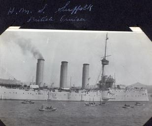 Keywords: uss brooklyn ussbrooklyn japan china russian revolution russianrevolution bj peterson bjpeterson ship warship royal navy royalnavy rn hms suffolk (1903) hmssuffolk1903 hms suffolk hmssuffolk monmouth-class monmouthclass armoured cruiser armouredcruiser armored cruiser armoredcruiser cruiser From a photo album donated by BJ Peterson showing scenes from China and Japan, and the Far East. Many of the images show the USS Brooklyn in Russia during the Russian Revolution and Russian Civil War circa 1919. Repository: San Diego Air and Space Museum Archive From a photo album donated by BJ Peterson showing scenes from China and Japan, and the Far East. Many of the images show the USS Brooklyn in Russia during the Russian Revolution and Russian Civil War circa 1919. Repository: San Diego Air and Space Museum Archive