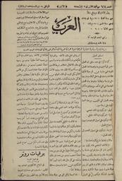 | Keywords: Al-Arab, Volume 3, Number 78, September 2, 1918 WDL12573.jpg Artwork ru Анистас а и аль-Ка мили 1866 1947 fr Anistās Mārī al-Karmilī ab 1866-1947 en Anistās Mārī al-Karmilī ab 1866-1947 zh 阿尼斯塔斯·玛里·卡尔密里,1866-1947 年 pt Anistās Mārī al-Karmilī ab 1866 a 1947 ar أنستاس ماري، الكرملي، الأب، 1866-1947 es Anistās Mārī al-Karmilī ab 1866-1947 ru Аль-А аб том 3 78 2 сентяб я 1918 года fr Al-Arab volume 3 n° 78 2 septembre 1918 en Al-Arab Volume 3 Number 78 September 2 1918 zh 阿拉伯人报 ,第 3 卷,第 78 ,1918 年 9 2 日 pt Al-Arab Volume 3 Número 78 2 de setembro de 1918 ar العرب، المجلد الثالث، العدد الثامن والسبعون، 2 سبتمبر 1918 ru Газета <em> Аль-А аб </em> А абы впе вые вышла в Багдаде 4 июля 1917 года спустя п име но четы е месяца после того как б итанские войска отвоевали го од у ту ок тем самым освободив его от т ехвекового господства Османской импе ии Газета появилась в пе еломный пе иод в исто ии И ака Она выпускалась б итанскими властями и служила упо ом б итанской админист ации на фоне поднимающейся волны и акского и а абского национализма В ней османские ту ки п едставлялись иноземцами а б итанцы освободителями и п едп инимались попытки асши ить влияние б итанской военной и политической ст атегии нап авленной п отив Османской импе ии в Пе вой ми овой войне И название и печатаемые на пе вой ст анице выходные данные в кото ых газета называлась а абской по своей сути и целям уч ежденной в Багдаде а абами и для а абов и публикуемые в газете мате иал все в газете было нап авлено на фо ми ование об аза местного издания отстаивающего инте есы а абского населения В пе едовице пе вого номе а ту ки были названы сыновьями Гога и агога желающими ист ебить а абов этот доб ый на од кото ый в п ошлом внес неоценимый вклад в дело п иумножения знания и п ог есса ми ного сосуществования и гуманизма ате иалы издания были посвящены таким темам как политика новости исто ия и лите ату а Редакто ом газеты был ученый и богослов Анистас аль-Ка мили и акский х истианин ливанского п оисхождения Поначалу газета Аль-А аб выходила каждые два дня но начиная с 28-го номе а стала публиковаться ежедневно к оме воск есенья Вначале она состояла из двух ст аниц пе иодически дополнявшихся п иложениями но начиная с 1 янва я 1918 года стала печататься на четы ех ст аницах В мае 1920 года она пе естала издаваться и ее заменила газета Аль-И ак И ак пе вый номе кото ой увидел свет 1 июня 1920 года <br>Экономические условия; Лите ату а; Политика и уп авление fr Le journal <em>Al-Arab</em> parut pour la première fois à Bagdad le 4 juillet 1917 quatre mois environ après la prise de la ville jusque-là sous la domination des Turcs par les troupes britanniques mettant fin à trois siècles d'emprise ottomane Le journal créé à une période critique de l'histoire de l'Irak était publié par les autorités britanniques et leur servait de porte-parole alors que le nationalisme irakien et arabe était en pleine ascension Dépeignant les Ottomans comme des étrangers et les Britanniques comme des libérateurs le journal avait pour objectif de développer la stratégie politique et militaire britannique contre les Ottomans pendant la Première Guerre mondiale Le titre l'ours qui déclarait que le journal fut « établi avec des principes et des objectifs arabes à Bagdad par des Arabes pour les Arabes » et le contenu visaient à souligner son caractère local et son allégeance arabe Un éditorial paru dans le premier numéro décrit les Turcs comme des « fils de Gog et Magog cherchant à annihiler les Arabes ce grand peuple qui œuvra autrefois de façon mémorable en faveur du savoir du progrès de la cohabitation et de l'humanité » Le journal abordait des sujets tels que la politique l'actualité l'histoire et la littérature Irakien chrétien d'origine libanaise le théologien et érudit Anistās al-Karmilī en était l'éditeur <em>Al-Arab</em> paraissait initialement tous les deux jours puis à partir du numéro 28 il fut publié tous les jours sauf le dimanche Le quotidien comportait d'abord 2 pages et parfois des suppléments mais il passa à 4 pages le 1<sup>er</sup> janvier 1918 Il cessa d'exister en mai 1920 Il fut remplacé par le journal <em>Al-Irak</em> dont le premier numéro parut le 1<sup>er</sup> juin 1920 <br>Conjoncture économique; Littérature; Politique et gouvernement en The newspaper<em> Al-Arab</em> The Arabs was firs