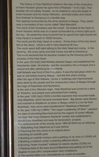 Keywords: Al-NuqtahMosque-Plaque.JPG en Plaque found within Masjid al-Nuqtah outlining its history - Aleppo Syria Own Toushiro 2008-08 36 11 43 5 N 37 7 58 6 E Masjid al-Nuqtah