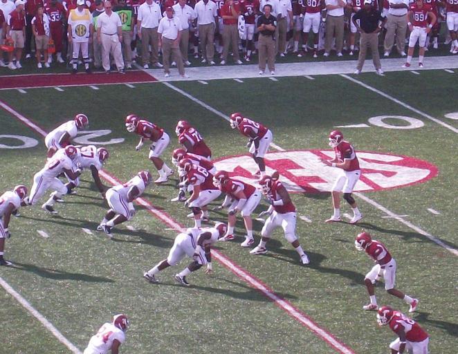 | Keywords: Alabama at Arkansas, 2010.jpg en Ryan Mallett drops back to pass against Alabama in 2010 own Brandonrush 2010-09-25 American football quarterbacks Ryan Mallett Arkansas Razorbacks football Alabama Crimson Tide football players College American football in-game action 2010 Alabama Crimson Tide football team |