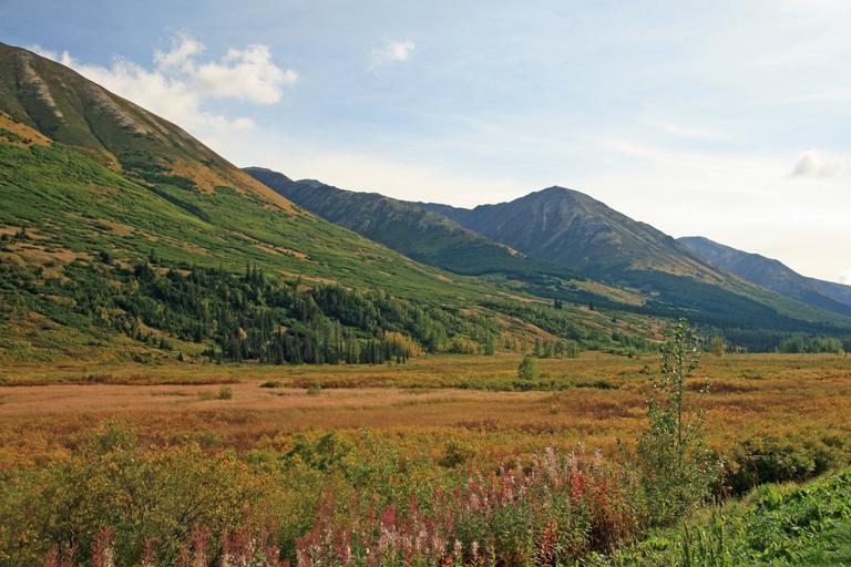 Keywords: alaska wilderness mountain mountains tundra sky clouds forest landscape grass trees usa nature