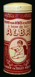 Keywords: Alba baby & toilet poeder blikje, foto5.JPG Very old Dutch product that is not produced and/or not sold any more own 2014-03-14 11 15 05 Alf van Beem CC-zero Trademarked Talcum powder tins