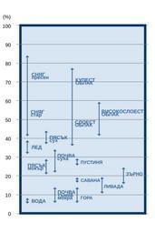 | Keywords: Albedo diagram.svg en Albedo - Percentage of reflected sun light in relation to the various surface conditions of the Earth bg Албедо - п оцент на от азената слънчева светлина от азлични повъ хности на Земята own Umqothu 17 октомв и 2008 Earth |