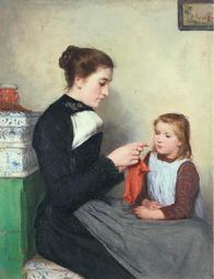| Keywords: Albert Anker - Strickende Bernerin mit Kind.jpg Artwork Creator Albert Anker Strickende Bernerin mit Kind oil canvas cm 49 38 object history Provenance Schweizer Privatbesitz credit line Unten links signiert accession number http //www sothebys com/en/auctions/ecatalogue/2010/schweizer-kunst-swiss-art-zh1003/lot 6 html Sotheby's PD-old-100 Albert Anker Paintings of mothers and daughters 19th-century portrait paintings Knitting in art Images from Sotheby's Paintings of women sewing indoors |