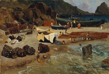 | Keywords: Albert Bierstadt - Fishing Boats at Capri.jpg Artwork Creator Albert Bierstadt 1857 oil paper canvas cm 33 97 49 85 institution Museum of Fine Arts Boston Not on view object history Provenance The artist until his death in 1902; with Rholfs Brooklyn about 1937; with Miss Frances Tarbox N Y 1946; with John Nicholson N Y 1946; to Maxim Karolik Newport R I 1946; to MFA 1947 gift of Martha C Mrs Maxim Karolik credit line Gift of Martha C Karolik for the M and M Karolik Collection of American Paintings 1815-1865 Lower right Capri/june 14 1857/ABierstadt AB in monogram accession number 47 1264 1 http //amica davidrumsey com/luna/servlet/detail/AMICO~1~1~6314~109 The-Marina-Piccola -Capri The AMICA Library<br/>2 http //www mfa org/collections/object/fishing-boats-at-capri-33133 Museum of Fine Arts Boston PD-old-100-1923 1902 Paintings by Albert Bierstadt American paintings in the Museum of Fine Arts Boston Paintings of Capri Fishing in art Paintings of boats 1857 paintings 1850s landscape paintings |