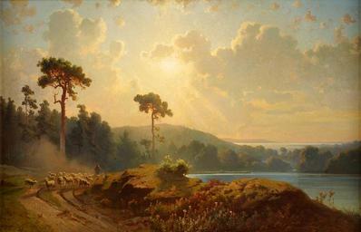 | Keywords: Albert Dreßler Seenlandschaft 1868.jpg Seenlandschaft Signiert Datiert Berlin 18 68 Öl auf Leinwand 46 x 72 cm http //www duesseldorfer-auktionshaus de/ Düsseldorfer Auktionshaus 1868 Creator Albert Dreßler PD-old-auto-1923 1897 Images from Düsseldorfer Auktionshaus Albert Dreßler 1868 paintings Landscape paintings Paintings of sheep |