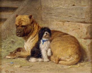 | Keywords: Albert Ernst Becker Mesalliance 1871.jpg Monogrammiert Datiert 1871 Öl auf Leinwand 1871 Oil on canvas cm 26 33 institution http //www duesseldorfer-auktionshaus de/ 2011/1 other versions PD-old-100 Images from Düsseldorfer Auktionshaus Albert Ernst Becker 19th-century paintings location missing 1871 paintings 19th-century oil on canvas paintings 19th-century paintings of dogs | ||||
