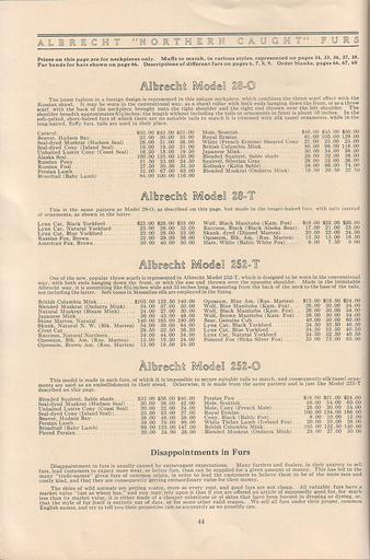 | Keywords: Albrecht's Fur Facts & Fashion 1912-13, Saint Paul, Minnesota -45.jpg Albrecht's Fur Facts Fashion 1912-13 Saint Paul Minnesota Albrecht's Fur Facts Fashion 1912-13 Saint Paul Minnesota - jpg 44 47 File Albrecht's Fur Facts Fashion 1912-13 Saint Paul Minnesota -46 jpg Collection Kuhn 1912 Albrecht's Fur Saint Paul Minnesota PD-old Albrecht's Fur Facts Fashion 1912-13 Saint Paul Minnesota Karakul fur advertising Beaver fur advertising Musquash fur advertising Rabbit fur advertising Seal fur advertising Pony fur advertising Broadtail fur advertising Mole fur advertising Ermine fur advertising Mink fur advertising Kolinsky fur advertising Squirrel fur advertising Lynx fur advertising Fox fur advertising Wolf fur advertising Raccoon fur advertising Skunk fur advertising Opossum fur advertising Hare fur advertising Stone marten fur advertising Fur pieces advertising Tibet lamb fur advertising |