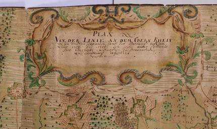 | Keywords: Albtal-1708-Detail-oben.jpg Plan von der Linie an dem Obern Rhein von dem Tobel bis Daxlanden sambt der Postirung auff den Winter 1708 und 1709 wie solche unter Com m ando Ihro Churfurstl Durchl zu Braunschweig und Lüneburg regulirt worden Zeitgenöss aquarellierte Tuschfeder- u -pinselzeichnung von Joh Barendorf manu propria in Gitterform Ing fecit Mit 2 ornament u 3 1 montiert Vorhang- bzw Schriftrollenkart sowie großer Windrose Nordwestl orientierte Militärkarte des Albtals zwischen Pfortz Hardtwald Rüppurr heute Karlsruhe Spielberg u Dobel Ettlingen im Zentrum Mit Einzeichnung der während des Spanischen Erbfolgekriegs 1707 auf Befehl des damaligen Oberbefehlshabers der Rheinarmee dem Kurfürsten Georg Ludwig von Braunschweig-Lüneburg errichteten Ettlinger Linie von der Rheinniederung bis Dobel im Nordschwarzwald Diese Verteidigungsanlage bildete mit der sich anschließenden Schwarzwaldlinie einen Sperriegel gegen die von Süden her erwarteten franz Truppen unbekannt 1708 Joh Barendorf File Albtal-1708 jpg PD-old-100 Alb Northern Black Forest 18th-century maps of Baden-Württemberg Ettlinger Linie |