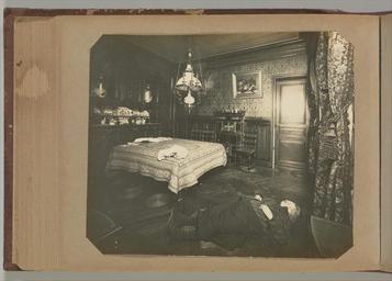 | Keywords: Album of Paris Crime Scenes - Attributed to Alphonse Bertillon. DP263788.jpg Alphonse Bertillon the chief of criminal identification for the Paris police department developed the mug shot format and other photographic procedures used by police to register criminals Although the images in this extraordinary album of forensic photographs were made by or under the direction of Bertillon it was probably assembled by a private investigator or secretary who worked at the Paris prefecture Photographs of the pale bodies of murder victims are assembled with views of the rooms where the murders took place close-ups of objects that served as clues and mug shots of criminals and suspects Made as part of an archive rather than as art these postmortem portraits recorded in the deadpan style of a police report nonetheless retain an unsettling potency 1904-03-25 Gelatin silver prints Overall 24 3 x 31cm 9 9/16 x 12 3/16in Page 23 x 29 cm 9 1/16 x 11 7/16 in Institution Metropolitan Museum of Art object history Christie's South Kensington May 11 2001 Lot 254 ; Hans P Kraus Jr Inc New York exhibition history 284718 credit line Gilman Collection Purchase The Howard Gilman Foundation Gift 2001 accession number 2001 483 1 “ 172 PD-100 1904-03-25 1904 deaths 1904 events in France 1904 in Paris 20th-century people of Paris 20th-century women of France Album of Paris Crime Scenes - Attributed to Alphonse Bertillon Building interiors in Paris Deaths from murder Human corpses in France Images of Paris from the Metropolitan Museum of Art March 1904 in France March 1904 photographs Old women of France People of France in 1904 32 rue de Turenne Paris |