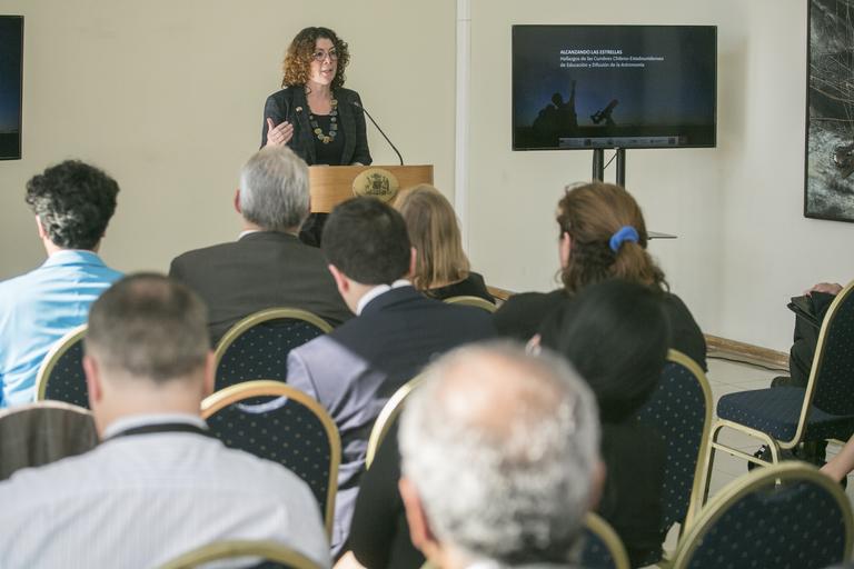 | Keywords: people “Alcanzando las Estrellas: Hallazgos de las Cumbres Chileno-Estadounidenses de Educación y Difusión de la Astronomía”, es el nombre del documento dado a conocer hoy y que representa el mayor esfuerzo nacional por coordinar estrategias en pos de potenciar la educación y difusión de la disciplina entre Chile y sus socios internacionales. Este informe sintetiza las ideas de más de cien expertos, representantes de 50 instituciones chilenas y extranjeras, que reconocieron el enorme potencial que posee Chile para convertirse en un referente mundial en educación y difusión pública de esta disciplina. Instituciones como los observatorios estadounidenses, conformados por AUI, AURA y Carnegie Institution for Science), la Embajada de Estados Unidos en Chile, CONICYT, Fundación Imagen de Chile y la Fundación Nacional de Ciencias de los Estados Unidos (NSF) participaron en las Cumbres Chileno-Estadounidenses de Educación y Difusión de la Astronomía. Para el año 2025 se proyecta que Chile poseerá el 75% de la capacidad de observación astronómica mundial. Con esta infraestructura no sólo se pueden responder preguntas que vinculan a la humanidad con el Universo, sino que el ser humano también es beneficiado educativamente en diversas áreas del saber. Para el embajador Gabriel Rodríguez, director de Energía, Ciencia y Tecnología e Innovación, del Ministerio de Relaciones Exteriores de Chile, “la astronomía no sólo permite responder preguntas sobre el origen de la vida y nuestro lugar en el cosmos, sino que además es una ciencia que nos acerca a la experiencia de transformar misterios ancestrales en conocimiento científico, a la vez que en saber cultural y sabiduría ciudadana, apropiados para hacer más humanos a todos los habitantes del planeta”. “El esfuerzo ofrecido por cada uno de los profesionales nacionales y extranjeros que aportaron generosamente su experiencia individual para agrupar los distintos puntos de vista de lo que está ocurriendo actualmente en materia de educación y difusión de la astronomía en Chile y el resto del mundo, constituye un recurso de gran utilidad para visibilizar buenas prácticas, y además favorece la futura colaboración entre quienes desarrollan iniciativas en esta área”, enfatizó el astrónomo Eduardo Hardy, que presentó el documento en representación de los observatorios estadounidenses. Las cumbres fueron visualizadas por los participantes como una oportunidad única para abordar, como comunidad, los problemas de coordinación y evaluación estratégica en la educación y difusión de la astronomía en Chile. Estas áreas de trabajo están desarrolladas en siete capítulos, y corresponden, por una parte, a la situación específica que experimenta en el plano nacional la educación y difusión de la astronomía en cinco campos ligados históricamente o en forma reciente con esta ciencia: la Educación Básica y Media; los planetarios, museos, centros de investigación y desarrollo científico y la educación no formal; los observatorios científicos internacionales; las universidades; y el astroturismo y los observatorios municipales y turísticos. Al final de cada capítulo se presenta un listado de recomendaciones y áreas de exploración futura, elaborado por cada grupo de trabajo. Las primeras se entienden como acciones concretas que, a juicio de los participantes, son posibles de implementar en el mediano y corto plazo. Las áreas de exploración futura, por su parte, corresponden a temas que requieren un mayor estudio y análisis antes de convertirse en recomendaciones factibles de ser implementadas. “Estamos conscientes que no sólo debemos centrar nuestra actividad en la entrega de fondos a los investigadores, para que lleven adelante proyectos a un nivel competitivo; también reconocemos la importancia y atractivo que despierta la disciplina en la sociedad. Por ello, pensamos que el rol de la astronomía en la educación de la ciencia debe transformarse en objetivo prioritario, en un tema clave para introducir un cambio”, comentó Christian Nicolai, director ejecutivo de CONICYT. Al finalizar la ceremonia, la profesora del Colegio Carlos Condell de la Haza, de La Serena, María Rebeca López, entregó a representantes de CONICYT el documento para que las recomendaciones y áreas de exploración que este texto incluye, sean puestas en acción con el respaldo de la principal institución pública del campo científico en Chile. "Estoy convencida que este documento será una brújula para nuestras autoridades a fin de potenciar y, ojala, priorizar a la astronomía como parte de nuestra identidad. Esta ciencia al alcance de mis estudiantes, contribuye e impulsa a que adquieran una visión mas amplia y enriquecedora del mundo en que les ha tocado vivir”, subrayó la docente. “Alcanzando las Estrellas: Hallazgos de las Cumbres Chileno-Estadounidenses de Educación y Difusión de la Astronomía”, es el nombre del documento dado a conocer hoy y que representa el mayor esfuerzo nacional por coordinar estrategias en pos de potenciar la educación y difusión de la disciplina entre Chile y sus socios internacionales. Este informe sintetiza las ideas de más de cien expertos, representantes de 50 instituciones chilenas y extranjeras, que reconocieron el enorme potencial que posee Chile para convertirse en un referente mundial en educación y difusión pública de esta disciplina. Instituciones como los observatorios estadounidenses, conformados por AUI, AURA y Carnegie Institution for Science), la Embajada de Estados Unidos en Chile, CONICYT, Fundación Imagen de Chile y la Fundación Nacional de Ciencias de los Estados Unidos (NSF) participaron en las Cumbres Chileno-Estadounidenses de Educación y Difusión de la Astronomía. Para el año 2025 se proyecta que Chile poseerá el 75% de la capacidad de observación astronómica mundial. Con esta infraestructura no sólo se pueden responder pr