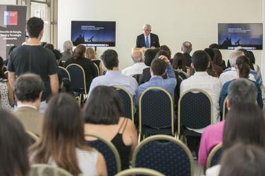 Keywords: indoor “Alcanzando las Estrellas: Hallazgos de las Cumbres Chileno-Estadounidenses de Educación y Difusión de la Astronomía”, es el nombre del documento dado a conocer hoy y que representa el mayor esfuerzo nacional por coordinar estrategias en pos de potenciar la educación y difusión de la disciplina entre Chile y sus socios internacionales. Este informe sintetiza las ideas de más de cien expertos, representantes de 50 instituciones chilenas y extranjeras, que reconocieron el enorme potencial que posee Chile para convertirse en un referente mundial en educación y difusión pública de esta disciplina. Instituciones como los observatorios estadounidenses, conformados por AUI, AURA y Carnegie Institution for Science), la Embajada de Estados Unidos en Chile, CONICYT, Fundación Imagen de Chile y la Fundación Nacional de Ciencias de los Estados Unidos (NSF) participaron en las Cumbres Chileno-Estadounidenses de Educación y Difusión de la Astronomía. Para el año 2025 se proyecta que Chile poseerá el 75% de la capacidad de observación astronómica mundial. Con esta infraestructura no sólo se pueden responder preguntas que vinculan a la humanidad con el Universo, sino que el ser humano también es beneficiado educativamente en diversas áreas del saber. Para el embajador Gabriel Rodríguez, director de Energía, Ciencia y Tecnología e Innovación, del Ministerio de Relaciones Exteriores de Chile, “la astronomía no sólo permite responder preguntas sobre el origen de la vida y nuestro lugar en el cosmos, sino que además es una ciencia que nos acerca a la experiencia de transformar misterios ancestrales en conocimiento científico, a la vez que en saber cultural y sabiduría ciudadana, apropiados para hacer más humanos a todos los habitantes del planeta”. “El esfuerzo ofrecido por cada uno de los profesionales nacionales y extranjeros que aportaron generosamente su experiencia individual para agrupar los distintos puntos de vista de lo que está ocurriendo actualmente en materia de educación y difusión de la astronomía en Chile y el resto del mundo, constituye un recurso de gran utilidad para visibilizar buenas prácticas, y además favorece la futura colaboración entre quienes desarrollan iniciativas en esta área”, enfatizó el astrónomo Eduardo Hardy, que presentó el documento en representación de los observatorios estadounidenses. Las cumbres fueron visualizadas por los participantes como una oportunidad única para abordar, como comunidad, los problemas de coordinación y evaluación estratégica en la educación y difusión de la astronomía en Chile. Estas áreas de trabajo están desarrolladas en siete capítulos, y corresponden, por una parte, a la situación específica que experimenta en el plano nacional la educación y difusión de la astronomía en cinco campos ligados históricamente o en forma reciente con esta ciencia: la Educación Básica y Media; los planetarios, museos, centros de investigación y desarrollo científico y la educación no formal; los observatorios científicos internacionales; las universidades; y el astroturismo y los observatorios municipales y turísticos. Al final de cada capítulo se presenta un listado de recomendaciones y áreas de exploración futura, elaborado por cada grupo de trabajo. Las primeras se entienden como acciones concretas que, a juicio de los participantes, son posibles de implementar en el mediano y corto plazo. Las áreas de exploración futura, por su parte, corresponden a temas que requieren un mayor estudio y análisis antes de convertirse en recomendaciones factibles de ser implementadas. “Estamos conscientes que no sólo debemos centrar nuestra actividad en la entrega de fondos a los investigadores, para que lleven adelante proyectos a un nivel competitivo; también reconocemos la importancia y atractivo que despierta la disciplina en la sociedad. Por ello, pensamos que el rol de la astronomía en la educación de la ciencia debe transformarse en objetivo prioritario, en un tema clave para introducir un cambio”, comentó Christian Nicolai, director ejecutivo de CONICYT. Al finalizar la ceremonia, la profesora del Colegio Carlos Condell de la Haza, de La Serena, María Rebeca López, entregó a representantes de CONICYT el documento para que las recomendaciones y áreas de exploración que este texto incluye, sean puestas en acción con el respaldo de la principal institución pública del campo científico en Chile. "Estoy convencida que este documento será una brújula para nuestras autoridades a fin de potenciar y, ojala, priorizar a la astronomía como parte de nuestra identidad. Esta ciencia al alcance de mis estudiantes, contribuye e impulsa a que adquieran una visión mas amplia y enriquecedora del mundo en que les ha tocado vivir”, subrayó la docente. “Alcanzando las Estrellas: Hallazgos de las Cumbres Chileno-Estadounidenses de Educación y Difusión de la Astronomía”, es el nombre del documento dado a conocer hoy y que representa el mayor esfuerzo nacional por coordinar estrategias en pos de potenciar la educación y difusión de la disciplina entre Chile y sus socios internacionales. Este informe sintetiza las ideas de más de cien expertos, representantes de 50 instituciones chilenas y extranjeras, que reconocieron el enorme potencial que posee Chile para convertirse en un referente mundial en educación y difusión pública de esta disciplina. Instituciones como los observatorios estadounidenses, conformados por AUI, AURA y Carnegie Institution for Science), la Embajada de Estados Unidos en Chile, CONICYT, Fundación Imagen de Chile y la Fundación Nacional de Ciencias de los Estados Unidos (NSF) participaron en las Cumbres Chileno-Estadounidenses de Educación y Difusión de la Astronomía. Para el año 2025 se proyecta que Chile poseerá el 75% de la capacidad de observación astronómica mundial. Con esta infraestructura no sólo se pueden responder preg