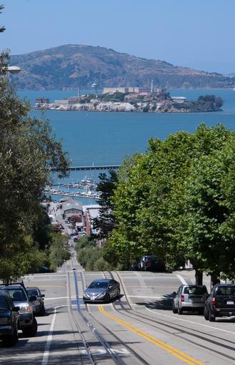 Keywords: alcatraz san fransisco usa water summer natural sky blue california mountains sea the sea prison road steep traffic view