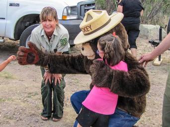 | Keywords: outdoor Smokey the Bear stopped by to say hello and hand out prizes at the Aldo Leopold Kids Fishing Derby at Lake Roberts 2016. Jessie Jobs/USFWS Smokey the Bear stopped by to say hello and hand out prizes at the Aldo Leopold Kids Fishing Derby at Lake Roberts 2016. Jessie Jobs/USFWS |