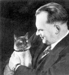 Keywords: Alehin i Chess.jpg Александ Алехин и его кот Чесс http //www alekhinechess com/russian/photos/cat html А Алехин 1936 PD-old Alexander Alekhine Men with cats Early Siamese cats