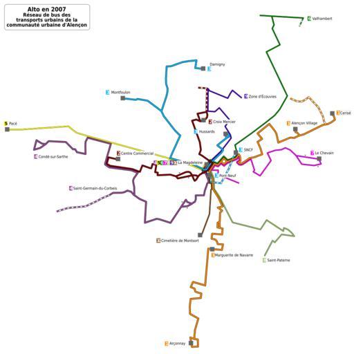 | Keywords: Alençon Alto public transport 2007 map-fr.svg  Map of regular public transport lines in W Alençon in 2007 Alençon Orne Basse-Normandie France Plan des lignes régulières des W Transports urbains de la communauté urbaine d'Alençon fr en 2007 Alençon Orne Basse-Normandie France 2010-01-22 17 42 UTC Reseau Aleo svg Reseau Aleo svg n Daiima derivative work Sémhur Other fields User Sémhur/Credit + Maps modified by User Sémhur -important Translation possible Graphic Lab Atelier graphique carte original upload log This image is a derivative work of the following images 1417x1417 256508 Bytes <nowiki>+ legend date station labels</nowiki> 2008-06-16T11 00 43Z Daiima 1417x1417 352176 Bytes <nowiki> </nowiki> 2008-06-16T10 51 44Z Daiima 1386x1333 349901 Bytes <nowiki> en Alençon's bus network map fr Plan du réseau Aléo d'Alençon travail personnel own work Daiima 16 juin 2008 </nowiki> Uploaded with derivativeFX Public transport maps of Alençon Buses in Alençon SVG maps in French |