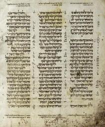 | Keywords: Aleppo Codex (Deut).jpg Aaron ben Ascher Aaron ben Asher Aarón-Ben-Asser Aharon ben Asher Title כֶּתֶר אֲרָ צוֹבָא Keter Aram Tzova he Codex von Aleppo Aleppo Codex Códex Aleppo Codex d'Alep Codex van Aleppo Series title ca 920 probably Tiberias israel Langswitch Der Aleppo Codex ist eine mittelalterliche Handschrift der Hebräischen Bibel Tanach die mit Rabbi Aaron Ben Asher in Verbindung steht Die masoretischen Gelehrten schrieben ihn im frühen 10 Jahrhundert wahrscheinlich in Tiberias Israel Er ist in Buchform und enthält die Vokalpunkte und Grammatik Punkte nikkudot welche die Aussprache der alten hebräischen Buchstaben angeben um die Gesangstradition zu bewahren Es ist vielleicht die historisch bedeutendste existierende hebräische Handschrift Von seinen ursprünglichen 487 Seiten wurden 193 zwischen 1947 und 1958 vermisst The Aleppo Codex is a medieval manuscript of the Hebrew Bible Tanakh associated with Rabbi Aaron Ben Asher The Masoretic scholars wrote it in the early 10th century probably in Tiberias Israel It is in book form and contains the vowel points and grammar points nikkudot that specify the pronunciation of the ancient Hebrew letters to preserve the chanting tradition It is perhaps the most historically important Hebrew manuscript in existence Of its original 487 pages 193 disappeared between 1947 and 1958 El Códice de Aleppo es un manuscrito medieval de la Biblia Hebrea Tanaj asociado con el rabino Aaron Ben Asher Los estudiosos Masorético que escribió en el siglo 10 temprano probablemente en Tiberias Israel Es en forma de libro y contiene los puntos de las vocales y los puntos de la gramática nikkudot que especifican la pronunciación de las antiguas letras hebreas para preservar la tradición de cantar Es tal vez el manuscrito hebreo históricamente más importante de su existencia De sus originales 487 páginas 193 desaparecidos entre 1947 y 1958 Le Codex d'Alep est un manuscrit médiéval de la Bible hébraïque Tanakh associée à Rabbi Aaron Asher Ben Les savants massorétique l'ai écrit en début du X e siècle probablement à Tibériade en Israël Il est sous forme de livre et contient les points-voyelles et les points de grammaire nikkudot qui précisent la prononciation des lettres hébraïques anciennes à préserver la tradition chantant Il est peut-être le manuscrit hébreu historiques les plus importants dans l'existence De son origine 487 pages 193 portés disparus entre 1947 et 1958 De Codex van Aleppo is een middeleeuws handschrift van de Hebreeuwse bijbel Tenach geassocieerd met Rabbi Aaron Ben Asher De Masoretische geleerden schreven het werk waarschijnlijk in de vroege 10de eeuw waarschijnlijk in Tiberias Israel Het handschrift is in boekvorm en bevat de klinker- en grammaticapunten van de antieke Hebreeuwse letters om de zangtraditie in stand te houden Het is misschien wel het belangrijkste Hebreeuwse manuscript Van de oorspronkelijk 487 pagina's raakten er 193 vermist tussen 1947 en 1958 http //www aleppocodex org <br> langswitch Foto gemacht von Photograph by Fotografía realizada por Photographie réalisée par Foto gemaakt door Ardon Bar Hama C 2007 The Yad Yitzhak Ben Zvi Institute <br> langswitch Hochgeladen von Uploaded by Téléchargement par Geüpload door Daniel baranek langswitch am on en en op 2007-06-02 PD-art Image page Aleppo Codex other versions thumb left LangSwitch Nahaufnahme von Josua 1 1 Close-up of Joshua 1 1 Close-up de Josué 1 1 Close-up du Josué 1 1 Close-up van Jozua 1 1 Information field LangSwitch Besitzerhistorie Object History Historial de la pieza Historique de conservation Herkomst ca 920 commission Tiberias Israel between 1040 1050 gift Karaitischer jüdischen Gemeinschaft Karaite Jewish Community Comunidad Judía Caraíta à Communauté juive Karaïte Karaitische Joodse Gemeenschap Jerusalem Israel Israel ben Simha Basra Iraq 1099 seizure Ersten Kreuzzugs Crusaders of the First Crusade Cruzados de la Primera Cruzada Croisés de la première croisade Kruisvaarders van de Eerste Kruistocht Jerusalem Israel ca 1100 acquisition LangSwitch Jerusalemer Synagoge Jerusalemite Synagogue Sinagoga de Jerusalén Synagogue jérusalémite Jeruzalemitische synagoge Fustat Egypt LangSwitch Kreuzrittern des Ersten Kreuzzugs Crusaders of the First Crusade Cruzados de la Primera Cruzada Croisés de la première croisade Kruisvaarders van de Eerste Kruistocht Jerusalem Israel century 15 transfer Aleppo Syria 1947 12 2 missing LangSwitch religiöser Unruhen in Aleppo Syria religious riots in Aleppo Syria disturbios religiosos en Aleppo Syria émeutes religieuses à Alep Syria religieuze rellen in Aleppo Syria 1958 transfer Jizchak Ben Zwi Jerusalem Israel President of Israel Yitzhak Ben-Zvi Jerusalem Israel El presidente de Israel Yitzjak Ben-Zvi Jerusalem Israel Président d'Israël Yitzhak Ben-Zvi Jerusalem Israel President van Israël Itzhak Ben-Zvi Jerusalem Israel Murad Faham Syria 1962 conveyance Hebraïschen Universität Jerusalem Israel Ben Zvi Institute Hebrew University Jerusalem Israel Instituto Ben Zvi la Universidad Hebrea Jerusalem Israel L'institute Ben Zvi l'Université Hébraïque Jerusalem Israel Ben Zvi Instituut de Hebreeuwse Universiteit Jerusalem Israel 1975 transfer Jüdische National- und Universitätsbibliothek Jerusalem Israel Jewish National and University Library Jerusalem Israel Biblioteca Nacional Judía y Universitaria Jerusalem Israel Bibliothèque nationale universitaire juive Jerusalem Israel Joodse Nationale- en Universiteitsbibliotheek Jerusalem Israel 1986 transfer Israel-Museum Jerusalem Israel Israel Museum Jerusalem Israel Museo de Israel Jerusalem Israel Musée d'Israël Jerusalem Israel Israel Museum Jerusalem Israel 1993 transfer Schrein des Buches Jerusalem Israel Shrine of the Book Jerusalem Israel Santuario del Libro Jerusalem Israel Sanctuaire du Livre Jerusalem Israel Schrijn van het Boek Jerusalem Israel html Aleppo Codex Hebrew calligraphy Fusta