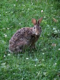 Keywords: alert bunny rabbit seated sitting watching waiting grass field yard
