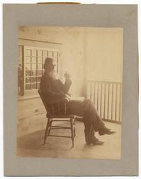 | Keywords: smithsonian institution smithsonianinstitution portrait alexander h. wyant alexanderhwyant painter landscape painter landscapepainter arksville catskills ny 1836-1892 18361892 tonalism movement tonalismmovement black and white photography blackandwhitephotography sepia tone sepiatone martha hasseltine marthahasseltine man on porch manonporch wyant portrait of american painter portraitofamericanpainter cat man beard book portrait beard chair window porch portraitbeardchairwindowporch porch man in chair maninchair man with beard manwithbeard sepia tone pho sepiatonepho archives of american art archivesofamericanart black and white Description: Wyant seated on the porch of his studio at Arkville in the Catskills, New York. Wyant was a painter, Catskills, N.Y. Creator/Photographer: Martha Hasseltine Whitney Medium: Black and white photographic print Dimensions: 26 cm x 21 cm Date: c. 1890 Persistent URL: www.aaa.si.edu/collections/images/detail/alexander-wyant-... Repository: Archives of American Art Accession number: AAA_miscphot_8602 Description: Wyant seated on the porch of his studio at Arkville in the Catskills, New York. Wyant was a painter, Catskills, N.Y. Creator/Photographer: Martha Hasseltine Whitney Medium: Black and white photographic print Dimensions: 26 cm x 21 cm Date: c. 1890 Persistent URL: www.aaa.si.edu/collections/images/detail/alexander-wyant-... Repository: Archives of American Art Accession number: AAA_miscphot_8602 |