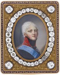 | Keywords: Alexander I by D.Bossi 2.jpg Artwork Creator Domenico Bossi Portrait of male Portrait facing right in black coat with gold-embroidered red collar wearing the blue moiré sash and breast star of the Russian Order of St Andrew Exceptionnelle tabatière impériale russe en or émail et diamants par Keibel ornée d ™une miniature par Bossi représentant le portrait du Tsar Alexandre Ier de Russie La boîte rectangulaire en or rose et jaune est très finement ciselée de rinceaux de fleurs de rosaces et de feuillages en relief sur fond amati les angles arrondis sont ornés dans un cartouche carré d'une rosace en émail champlevé bleu roi et bleu ciel les bordures latérales ainsi que celles du couvercle et du revers sont ornées d'une baguette en émail bleu roi champlevé sur or rose le dos présente également un ciselage d ™une très grande finesse arrangé autour de motifs circulaires en émail bleu ciel et bleu roi Poinçonné deux fois à l ™intérieur Keibel pour Otto Samuel Keibel maître orfèvre à St Petersbourg de 1797 à 1809 Le couvercle à charnières présente une miniature ovale sur ivoire du portrait du Tsar Alexandre Ier 1777-1825 en manteau noir à col rouge portant le bandeau bleu moiré et l ™insigne de l'ordre impérial de Saint-André peinte par Giovanni Domenico Bossi 1765-1853 signée et datée 1803 Elle est majestueusement bordée de 32 diamants environ 28 carats subtilement séparés d ™autant de petites roses de diamants Quatre autres diamants environ 8 8 carats ornent chacun des coins St Petersburg circa 1803 9x7 5x1 5 cm 253g numéros d ™inventaires 79 et 641 Dans son écrin de velours de soie vert et rouge encadré par une broderie de fils d ™or Provenance Prince Antonio Comuto de Zantes Grèce par héritage dans la même famille jusqu ™Ã ce jour La famille Comuto est venue à Zante du Péloponèse vers l ™an1500 Elle fut inscrite au Livre d ™Or de la noblesse de Zante à la fin du XVIe siècle En 1626 elle fut élevée au titre de comte en la personne du Dr Stamatello Comuto Les membres de cette famille ont ensuite occupé les plus hautes charges de l ™Etat Grand intellectuel le comte Antonia Comuto 1748-1833 a étudié la philosophie la littérature et obtient un doctorat de droit à l ™université de Padoue A son retour à Zante il est nommé membre du Grand Conseil inspecteur des écoles puis élu député au Parlement ionien Sénateur puis Président Les ÃŽles Ioniennes à l ™ouest de la Grèce ont été longtemps sous la domination vénitienne En 1797 elles sont annexées par la France puis en 1800 l ™archipel est occupé par les forces russo-ottomanes et est placé sous protectorat sous le nom de la République des Sept-ÃŽles Le 7 décembre 1803 le comte Comuto est élevé au titre de Prince de l ™Etat Septinsulaire sur l ™ordre exprès de SM l ™Empereur de Russie C ™est à l ™occasion de cette promotion au titre de gouverneur qu ™il reçoit du Tsar Alexandre Ier la présente boîte Reference Livre d'Or de la noblesse Ionienne - Corfou Céphalonie Zante Eugène Rizo Rangabè Maison d'éditions Eleftheroudakis Athènes 1925 3rd volume pages 69-72 Pour une boîte similaire mais sans diamant the Gilbert Loan at the Victoria Albert Museum London ref 442-2008 1803 Technique miniature oval mm 36 unknown D Bossi pinx 1803 signature/date lower right http //www hoteldesventes ch/176-37 other versions PD-old-100 DEFAULTSORT 1803; Alexander I of Russia Files uploaded by Shakko from various sources Domenico Bossi Alexander I of Russia in portrait miniatures 1803 portrait paintings Male 19th-century oval portrait miniatures of men at bust length Portrait paintings in 19th-century military uniforms of Russia Sashes of chivalric orders in portrait paintings Stars of chivalric orders in portrait paintings Three-quarter view portrait paintings of men facing right Johann Wilhelm Keibel |