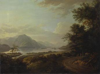 Keywords: alexander nasmyth painting oil on canvas artistic nature outside sky clouds landscape mountains forest trees lake water
