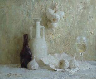 Keywords: Alexander ZIMIN / Garlic and olive oil - Оil on canvas. 50x60 cm art-call Artistically