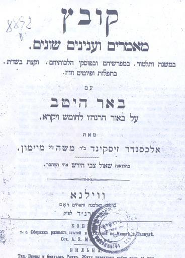 Keywords: Alexander Ziskind Maimon book.jpg שער הספר קובץ מאמרי וענייני שוני ש א כסנדר זיסקינד מימון he wikipedia מתניה סריקה הוצא אור 1894 נסרק 2007 הרב א כסנדר מימון PD-old original upload log page he wikipedia Alexander_Ziskind_Maimon_book jpg 2007-12-16 17 08 Wierzba 475×660× 291159 bytes <nowiki> מידע תיאור שער הספר קובץ מאמרי וענייני שוני ש א כסנדר זיסקינד מימון מקור תאריך יצירה הוצא אור 1894 נסרק 2007 יוצר אישורי והיתרי �</nowiki> Rabbis from Lithuania |