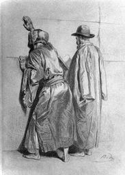 | Keywords: Alexandre Bida - The Jews at the Wailing Wall - Walters 371391.jpg ca 1850 black and white chalk on blue moderately thick moderately textured wove paper cm 30 8 22 1 accession number 37 1391 15703 William T Walters city Baltimore from the artist Henry Walters city Baltimore Walters Art Museum Henry Walters William T Walters Bida in black chalk lower right A Discerning Eye Nineteenth-century Drawings and Watercolors Academy of the Arts Easton Easton 1998-1999 The Essence of Line French Masterworks on Paper The Walters Art Gallery Baltimore 1992 Botanical Delights Floral Motifs in 19th-Century Art Strathmore Hall Art Center North Bethesda; Academy of the Arts Easton Easton; Government House Annapolis 1998-1999 place of origin France Walters Art Museum license 2D The Essence of Line Alexandre Bida People facing the Western Wall Jewish prayers in art 1850 drawings Drawings in the Walters Art Museum Chalk drawings Western Wall in art |
