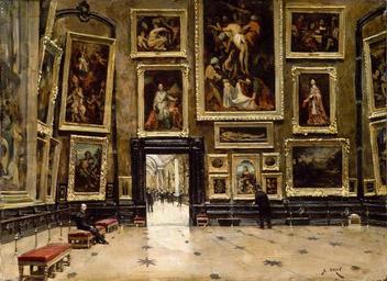 | Keywords: Alexandre Brun - View of the Salon Carré at the Louvre.jpg Artwork Creator Alexandre Brun ~ 1880 Oil on canvas cm institution Louvre object history exhibition history credit line signed bottom right A BRUN accession number http //www flickr com/photos/gandalfsgallery/9408023010/ Q19939091 PD-old-auto-1923 1941 Alexandre Brun Salon Carré Louvre Paintings of interiors of museums History of the Musée du Louvre Paintings of paintings Paintings of interiors of Paris buildings 1880 in Paris ImageNote 1 5 10 300 1994 4000 2914 2 thumb Category Marriage at Cana Paulo Veronese The Wedding at Cana Paolo Veronese ImageNoteEnd 1 ImageNote 2 615 1929 65 155 4000 2914 2 thumb Category Portrait of a Man - Antonello da Messina - Louvre MI 693 Portrait of a Man Antonello da Messina ImageNoteEnd 2 ImageNote 3 735 1484 350 520 4000 2914 2 thumb Category The Virgin and Child with Saint Anne painting by Vinci The Virgin and Child with Saint Anne Leonardo da Vinci ImageNoteEnd 3 ImageNote 4 2205 1859 140 160 4000 2914 2 thumb Category Madonna of the Green Cushion - Andrea Solario - Louvre INV 673 Madonna of the Green Cushion Andrea Solario ImageNoteEnd 4 ImageNote 5 2425 1639 260 395 4000 2914 2 thumb Category La Belle Jardinière - Raphael - Louvre INV 602 La Belle Jardinière Raphael ImageNoteEnd 5 ImageNote 6 3005 120 520 435 4000 2914 2 thumb Concert at the bas-relief Category Valentin de Boulogne Valentin de Boulogne ImageNoteEnd 6 ImageNote 7 3075 760 365 570 4000 2914 2 thumb Category Portrait of Richelieu by Philippe de Champaigne Louvre INV 1136 Portrait of Richelieu Philippe de Champaigne ImageNoteEnd 7 ImageNote 8 3800 390 195 755 4000 2914 2 thumb Category Pietà with Sts Francis and Mary Magdalen - Annibale Carracci - Louvre INV 198 Pietà with Sts Francis and Mary Magdalen Annibale Carracci ImageNoteEnd 8 ImageNote 9 3860 1320 135 615 4000 2914 2 thumb Category Big Holy Family by Raphael Louvre Big Holy Family Raphael ImageNoteEnd 9 ImageNote 10 3605 1859 80 155 4000 2914 2 thumb Category Ceres - Raphael workshop - Louvre INV 657 Ceres Raphael workshop ImageNoteEnd 10 ImageNote 11 405 485 160 820 4000 2914 2 thumb Tomyris Queen of the Scythes Plunges the Head of the Dead Cyrus Into a Vessel of Blood Category Peter Paul Rubens Peter Paul Rubens ImageNoteEnd 11 ImageNote 12 380 1420 100 635 4000 2914 2 thumb Apparition of the Virgin with Saint Agnes and Saint Thecla to Saint Martin Category Eustache Le Sueur Eustache Le Sueur ImageNoteEnd 12 ImageNote 13 655 415 520 895 4000 2914 2 thumb Category Madonna and Child with Four Saints - Guercino - Louvre INV 84 Madonna and Child with Four Saints Guercino ImageNoteEnd 13 ImageNote 14 485 1445 150 610 4000 2914 2 thumb Category Madonna and Child with St Elisabeth the Infant St John and Two Angels - Andrea del Sarto - Louvre INV 713 Madonna and Child with St Elisabeth the Infant St John and Two Angels Andrea del Sarto ImageNoteEnd 14 ImageNote 15 1095 1899 90 150 4000 2914 2 thumb Erasmus Category Hans Holbein d J Hans Holbein d J ImageNoteEnd 15 ImageNote 16 1235 1844 150 210 4000 2914 2 thumb Saint Jean-Baptiste / Sainte Madeleine Category Hans Memling Hans Memling ImageNoteEnd 16 ImageNote 17 1365 95 530 460 4000 2914 2 thumb The Childhood of Zeus Category Jacob Jordaens Jacob Jordaens ImageNoteEnd 17 ImageNote 18 1460 710 435 660 4000 2914 2 thumb Bossuet Category Hyacinthe Rigaud Hyacinthe Rigaud ImageNoteEnd 18 ImageNote 19 2085 5 770 1180 4000 2914 2 thumb The Deposition Category Jean-Baptiste Jouvenet Jean-Baptiste Jouvenet ImageNoteEnd 19 ImageNote 20 2235 1305 550 205 4000 2914 2 thumb Dead Christ Category Philippe de Champaigne Philippe de Champaigne ImageNoteEnd 20 ImageNote 21 2165 1609 200 180 4000 2914 2 Landscape Shepherd and Herd Claude Lorrain ImageNoteEnd 21 ImageNote 22 2725 1594 160 165 4000 2914 2 Marine Sunset Claude Lorrain ImageNoteEnd 22 ImageNote 23 2710 1809 215 245 4000 2914 2 thumb Category Salome with the Head of St John the Baptist - Bernardino Luini - Louvre INV 361 Salome with the Head of St John the Baptist Bernardino Luini ImageNoteEnd 23 ImageNote 24 3005 1509 565 445 4000 2914 2 thumb Category Poussin - Diogène jetant son écuelle - Louvre INV 7308 Landscape with Diogenes Nicolas Poussin ImageNoteEnd 24 ImageNote 25 3775 1864 110 150 4000 2914 2 thumb Category Saint George with the Dragon Louvre by Raffaello Sanzio Saint George with the Dragon Raphael ImageNoteEnd 25 |