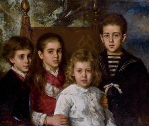 | Keywords: Alexei Harlamoff (1840-1925) - Portrait of the children of Paul Pavlovich Demidoff.jpg en Portrait of four children from the second marriage of Paul Pavlovich Demidoff 2nd Prince of San Donato 1839-1885 Avrora 1873-1904 Anatoli 1874-1943 Maria 1876-1955 and Pavel 1879-1909 signed inscribed and dated 'Harlamoff/Pratolino 1883 ' lower left oil on canvas 76 5 x 90 cm Christie's online 5321895 Creator Alexei Harlamov 1883 House of Demidov Anatoliy Pavlovich Demidov Avrora Pavlovna Demidova Maria Pavlovna Abamelik-Lazareva Demidova Alexei Harlamov Children in Russian portraits Family portraits of Russia PD-old-auto 1923 |