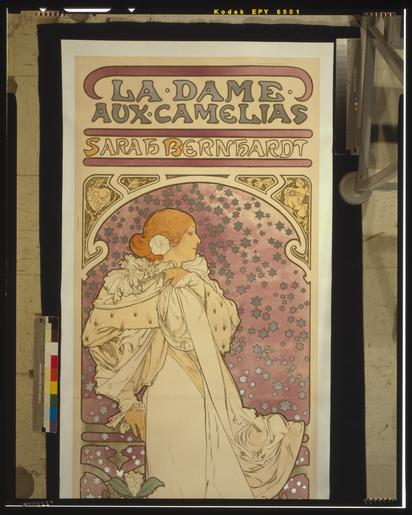 | Keywords: Alfons Mucha - 1896 - La Dame aux Camélias - Sarah Bernhardt - Original Scan 1.tiff File Alfons Mucha - 1896 - La Dame aux Camélias - Sarah Bernhardt jpg Artwork creator Alfons Mucha The Lady of the Camellias 1896 lithograph 207 3 × 72 2 cm Library of Congress accession number object history credit line Do not crop the border out it's clearly part of the artistic intent This is not an image on yellowed paper this is a yellow image on white paper Stitched together from a two-part scan vignetting from said scan fixed as best as is possible minor damage restored as a mass-produced artwork the goal is slightly more idealised form than with a one-off image border whitened up a bit this was apparently on glossy paper as there was no real paper texture in the scan just lithographic printing Original file from http //www loc gov/pictures/item/00652382/ Library of Congress File Alfons Mucha - 1896 - La Dame aux Camélias - Sarah Bernhardt jpg - Restoration JPEG File Alfons Mucha - 1896 - La Dame aux Camélias - Sarah Bernhardt png - Restoration PNG File Alfons Mucha - 1896 - La Dame aux Camélias - Sarah Bernhardt - Original Scan 1 tiff - Original Library of Congress Scan upper half TIFF File Alfons Mucha - 1896 - La Dame aux Camélias - Sarah Bernhardt - Original Scan 2 tiff - Original Library of Congress Scan lower half TIFF Creator Alfons Mucha PD-old-auto-1923 1939 Posters by Alfons Mucha Sarah Bernhardt 1890s posters Art Nouveau posters Private art collections Alexandre Dumas fils Performances at the Théâtre de la Renaissance Theatre posters of France 1896 in theatre Ermine clothing in art Adam Cuerden's restorations |