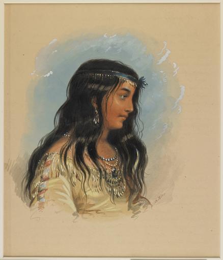 | Keywords: Alfred Jacob Miller - A Young Woman of the Flat Head Tribe - Walters 37194011.jpg One of the social highlights of the rendezvous occured when this young woman quite a belle Miller thought ran off with a stalwart Canadian trapper Not knowing that the trapper had already begun paying court to the girl one of Miller's friends a young man from St Louis named Phillipson decided that she would be his His presents and attentions were kindly received Miller noted encouraging the young man Phillipson felt embarrassed before the whole camp when the simple Indian girl realizing that her future was with the trapper stole off quietly Phillipson initially was crest-fallen and melancholy Miller recorded but later regained his serenity between 1858 1860 watercolor heightened with white on paper cm 28 1 24 accession number 37 1940 11 8366 William T Walters Baltimore 1858-1860 by commission Henry Walters city Baltimore Walters Art Museum Henry Walters Commissioned by William T Walters 1858-1860 Alfred Jacob Miller An Artist on the Oregon Trail Alfred Jacob Miller Watercolors and Drawings The Walters Art Gallery Baltimore 1984 Alfred Jacob Miller Maryland and the West The Walters Art Gallery Baltimore; Frostburg State University Frostburg; Jewish Community Center of Greater Washington Rockville; Washington College Chestertown 1988 Sentimental Journey The Art of Alfred Jacob Miller Amon Carter Museum Fort Worth; Joslyn Art Museum Omaha 2008-2009 place of origin USA Walters Art Museum license 2D Alfred Jacob Miller An Artist on the Oregon Trail Confederated Salish and Kootenai Tribes of the Flathead Nation 19th-century watercolor portraits of women Three-quarter views of people Paintings of Native Americans by Alfred Jacob Miller Paintings by Alfred Jacob Miller in the Walters Art Museum |