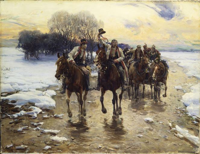 | Keywords: Alfred Wierusz-Kowalski - Wesele.jpg Artwork Creator Alfred Wierusz-Kowalski oil canvas cm 48 3 62 2 Private Collection object history sold at Christie's credit line A Wierusz-Kowalski ~ lower left signature accession number 402089 PD-old-auto-1923 1915 Paintings by Alfred Wierusz-Kowalski Marriage in art Carriages in art Horses in art Images from Christie's |