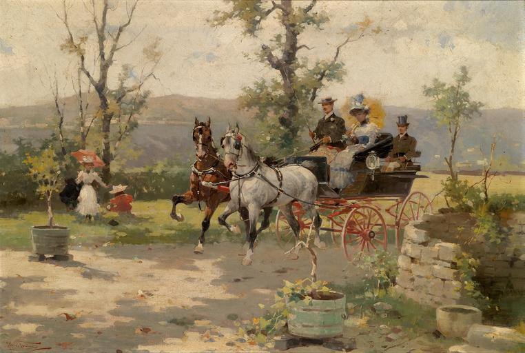 Keywords: Alfredo Tominz - Excursion in the Park.jpg Artwork Creator Alfredo Tominz by 1936 oil canvas http //chetvergvecher livejournal com/1097719 html PD-old-auto 1936 Paintings by Alfredo Tominz 20th-century oil on canvas paintings 20th-century landscape paintings Paintings of horse driving |