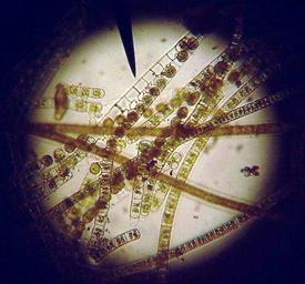 | Keywords: Algaeconjugate.jpg I took this image using a digital camera and a compound light microscope at a total magnification of 100X This is fresh water green algae collected from the scum on the top of a pond in February 2007 in Waxahachie Texas The weather had been warm and was turning cold again I think that it induced these algae to conjugate The pointer is showing conjugating filamentous green algae The two strands are still separate at the bottom where the cells have not yet conjugated As the strands get closer together a sex pilus is formed and one cell moves across to fuse with the other cell The empty cell walls in the other strand can clearly be seen User Rozzychan Rozzychan 13 05 17 February 2007 UTC own 2010-02-15 Rozzychan talk Uploads I took this image using a digital camera and a compound light microscope at a total magnification of 100X This is fresh water green algae collected from the scum on the top of a pond in February 2007 in Waxahachie Texas The weather had been warm and was turning cold again I think that it induced these algae to conjugate The pointer is showing conjugating filamentous green algae The two strands are still separate at the bottom where the cells have not yet conjugated As the strands get closer together a sex pilus is formed and one cell moves across to fuse with the other cell The empty cell walls in the other strand can clearly be seen Rozzychan 13 05 17 February 2007 UTC Rozzychan~enwiki en Original upload log en wikipedia ftcg page en wikipedia Algaeconjugate jpg wikitable - 09 33 15 February 2010 954 × 890 126 060 bytes Bob Blaylock w en <nowiki> I hope the creator of the original version doesn't mind but this file seemed to be desperately in need of some minor adjustments which I have performed under PhotoShop </nowiki> - 13 05 17 February 2007 954 × 890 114 533 bytes Rozzychan~enwiki w en <nowiki>I took this image using a digital camera and a compound light microscope at a total magnification of 100X This is fresh green algae collected from the scum on the top of a pond in February 2007 in Waxahachie Texas The weather had been warm and was turn</nowiki> Uncategorized 2015 August 16 |