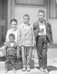 | Keywords: algeria aid el kebir aidelkebir boys joan steider joansteider mennonite central committee mennonitecentralcommittee mennonite board of missions mennoniteboardofmissions people groupshot blackandwhite monochrome black and white Caption: Three Algerian boys dress in their best clothes for the celebration of Aid el Kebir (the Big Feast), an important Moslem holy day. Behind them is MCC nurse Joan Steider from Pa. Citation: Mennonite Board of Missions. Photographs. Algeria Pax, 1955-1963. IV-10-7.2 Box 1 folder 27, photo #117. Mennonite Church USA Archives - Goshen. Goshen, Indiana. Caption: Three Algerian boys dress in their best clothes for the celebration of Aid el Kebir (the Big Feast), an important Moslem holy day. Behind them is MCC nurse Joan Steider from Pa. Citation: Mennonite Board of Missions. Photographs. Algeria Pax, 1955-1963. IV-10-7.2 Box 1 folder 27, photo #117. Mennonite Church USA Archives - Goshen. Goshen, Indiana. |