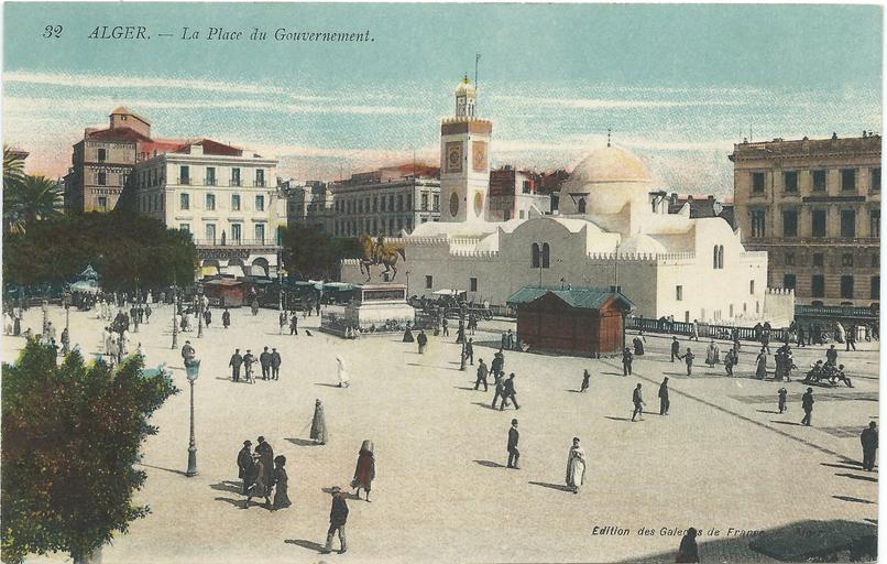 | Keywords: Algers La place du Gouvernement.jpg nl Briefkaart van Algiers pre WW I Postcard author Edition des Galeries de France other versions thumb Custom license marker 2016 01 25 Anonymous-EU PD-1923 Postcards of Algiers Jamaa al-Jdid Algiers Martyrs' square Algiers Statue équestre du Duc d'Orléans |