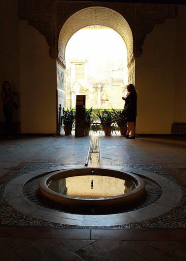 Keywords: alhambra source water arc backlight muslim art reales alcázares seville andalusia spain reflection room