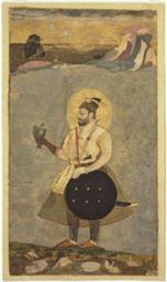 | Keywords: Ali Adil Shah II.jpg en Sultan 'Ali 'Adil Shah II Made in Bijapur Karnataka India c 1670 Artist/maker unknown India Karnataka Bijapur Opaque watercolor and gold on paper 10 5/16 x 6 1/16 inches 26 2 x 15 4 cm Currently not on view 2004-149-38 Alvin O Bellak Collection 2004 Label During the reign of Sultan 'Ali 'Adil Shah II of Bijapur reigned 1656-72 ruler of one of the five Islamic kingdoms of the Deccan the threat of Mughal military domination increased In painting however the Deccani preference for fanciful decorative compositions reasserted itself over the Mughal naturalism that had filtered into Bijapuri painting during the previous three decades The sultan stands in a strange landscape; a small hill gives way to a mysterious field of gray that ends abruptly at a group of pink and blue rocks where birds perform aerial tricks 'Ali 'Adil Shah is oddly drawn his fingers distorted to follow the shape of his shield rather than the form of human anatomy http //www philamuseum org/collections/permanent/96048 html mulR 5018 Author ~ 1670 PD-art Ali Adil Shah II Small-sized paintings Paintings of men of Karnataka 17th-century Mughal miniatures Watercolor paintings of men of India Karnataka in the 1670s 1670s paintings from India |
