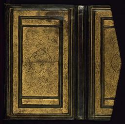 | Keywords: 'Ali Quli ibn Qadr ibn Nur-- Barrak (?) - Collection of Poems (divan) - Walters W630 - Bottom Exterior.jpg Walters manuscript W 630 is an illuminated copy of the collection of poems divan by Shams al-Din Muhammad Hafiz al-Shirazi flourished 8th century AH/AD 14th The manuscript is written in black Nasta'liq script by 'Ali Quli Barrak and dated Sha'ban 966 AH/AD 1559 The text opens with an illuminated incipit with titlepiece inscribed Divan-i Khvajah Hafiz Shirazi 'alayhi al-rahmah fol 1b The text of the incipit and the facing page fols 1b-2a has gilt interlinear decoration The dark brown leather binding which is original to the manuscript is panel-stamped in relief with a central lobed medallion with pendants and an allover floral and vine decoration The doublures of red-brown leather have a central medallion pendants and cornerpieces in leather filigree on a blue ground islamic 1559 966 Safavid ink and pigments on cream-colored laid paper covered with dark brown leather with gold; red-brown leather doublures Folio cm 26 15 5 accession number W 630 3513 Sultan 'Uthman Khan date and mode of acquisition unknown erased waqf seal and statement signed by Ibrahim Hanif inspector of awqaf and the shelfmarks 3815 and 3795 crossed out on fol 1a Henry Walters Baltimore date and mode of acquisition unknown Walters Art Museum Henry Walters Acquired by Henry Walters Poetry and Prayer Islamic Manuscripts from the Walters Art Museum The Walters Art Museum Baltimore 2010 place of origin Iran Walters Art Museum license 2D Divan by Hafez Safavid Walters MS 630 'Ali Quli ibn Qadr ibn Nur-- Barrak (?) - Collection of Poems (divan) - Walters W630 - Bottom Exterior.jpg Walters manuscript W 630 is an illuminated copy of the collection of poems divan by Shams al-Din Muhammad Hafiz al-Shirazi flourished 8th century AH/AD 14th The manuscript is written in black Nasta'liq script by 'Ali Quli Barrak and dated Sha'ban 966 AH/AD 1559 The text opens with an illuminated incipit with titlepiece inscribed Divan-i Khvajah Hafiz Shirazi 'alayhi al-rahmah fol 1b The text of the incipit and the facing page fols 1b-2a has gilt interlinear decoration The dark brown leather binding which is original to the manuscript is panel-stamped in relief with a central lobed medallion with pendants and an allover floral and vine decoration The doublures of red-brown leather have a central medallion pendants and cornerpieces in leather filigree on a blue ground islamic 1559 966 Safavid ink and pigments on cream-colored laid paper covered with dark brown leather with gold; red-brown leather doublures Folio cm 26 15 5 accession number W 630 3513 Sultan 'Uthman Khan date and mode of acquisition unknown erased waqf seal and statement signed by Ibrahim Hanif inspector of awqaf and the shelfmarks 3815 and 3795 crossed out on fol 1a Henry Walters Baltimore date and mode of acquisition unknown Walters Art Museum Henry Walters Acquired by Henry Walters Poetry and Prayer Islamic Manuscripts from the Walters Art Museum The Walters Art Museum Baltimore 2010 place of origin Iran Walters Art Museum license 2D Divan by Hafez Safavid Walters MS 630 |